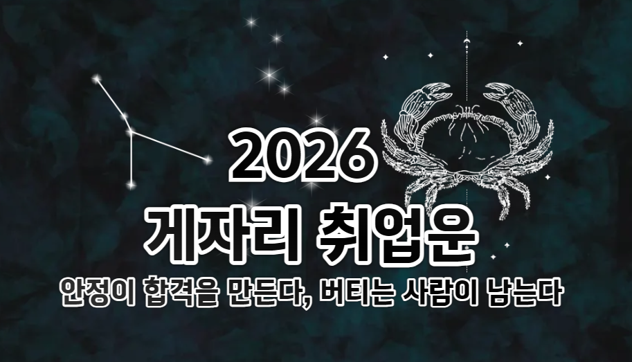 2026년 게자리는 크게 튀지 않아도, 끝까지 남는 사람이 되는 해입니다. 지금까지 쌓아온 안정감과 책임감이 취업과 커리어에서 확실한 무기가 될 거예요. 🦀