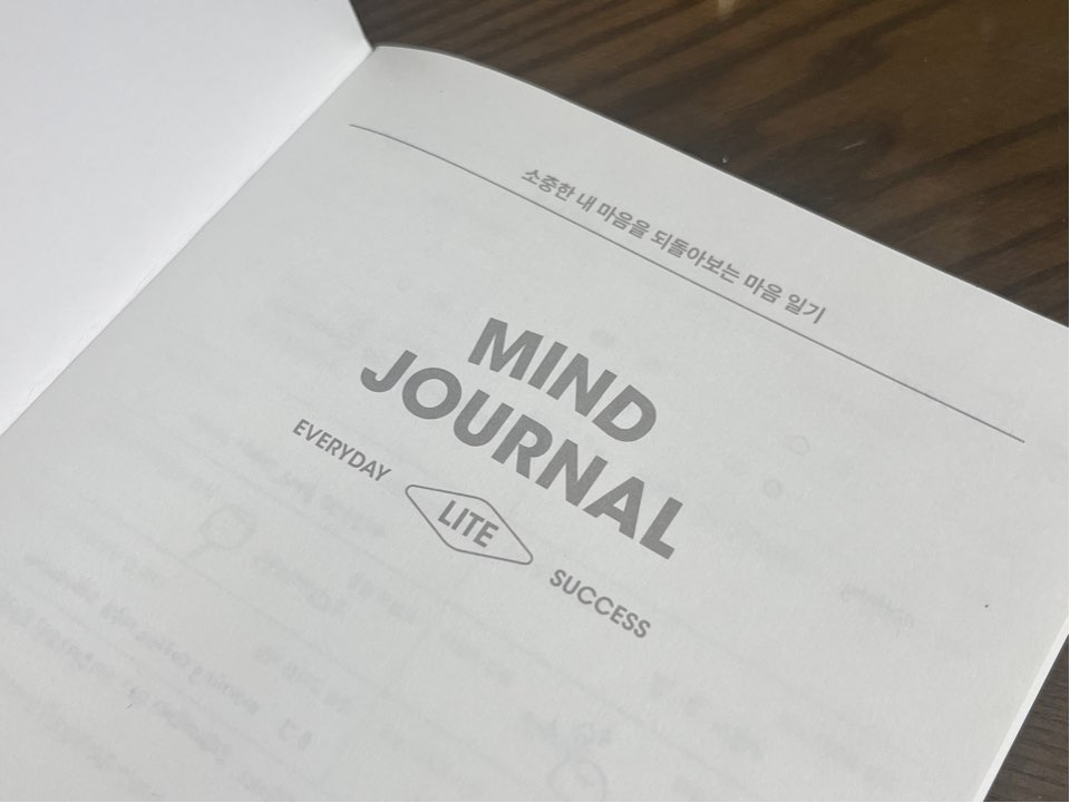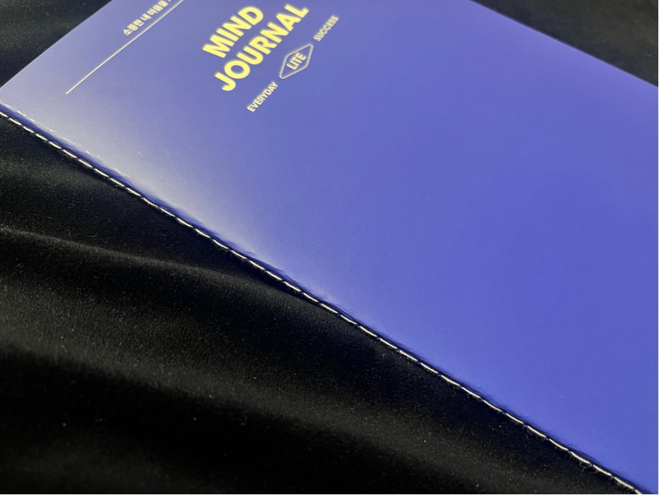 표지는 깔끔한 블루 컬러에 MIND JOURNAL이라는 심플한 문구가 들어가 있다. 과하지 않은 디자인이라 책상 위에 올려두기 부담 없고, 회사나 카페에서도 눈치 보이지 않는 스타일이다. (물론 문구는 걸리면 안된다)