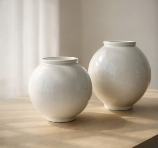 달항아리를 가까이서 보면 의외로 완벽하게 대칭이 아닙니다. 실제로 달항아리는 위아래를 따로 빚어서 붙이는 경우가 많아, 미세하게 기울거나 좌우의 볼륨이 다르게 보이기도 합니다. 그런데 이게 결점이라기보다, 달항아리의 매력 포인트로 자주 언급됩니다.