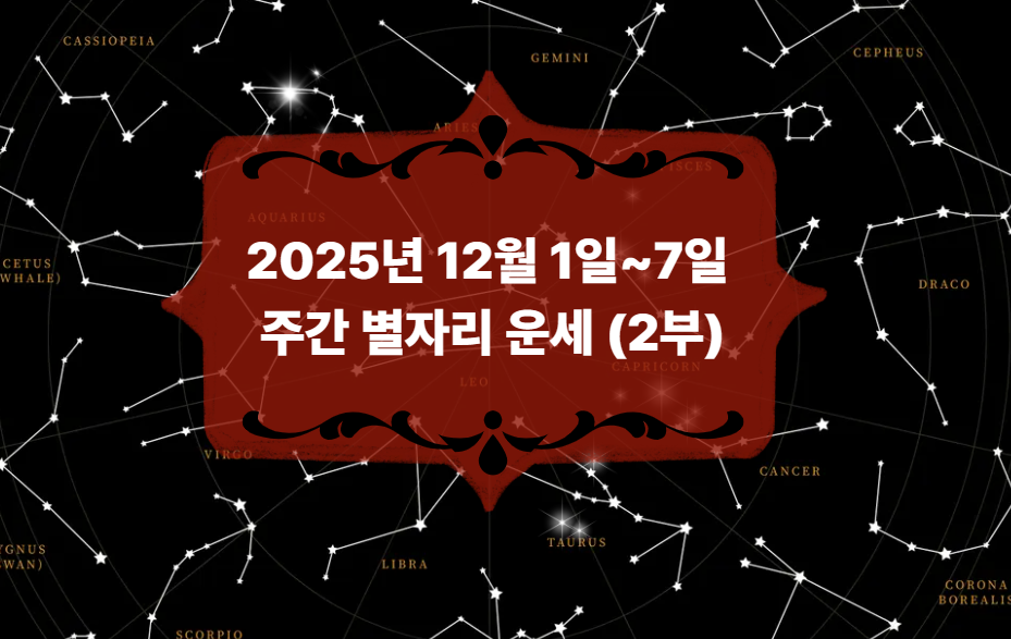 | 2025년 12월 1일~7일 주간 별자리 운세 (1부) │ 양자리~처녀자리 재물운·직장운·연애운·건강운 종합 해설 (0) | 2025.12.01 |